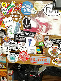 On one wall we found the most unique mugs of any brewery we've visited. The 'mug-shot' board is located behind the popcorn machine. It is such a clever idea for their mug club members.